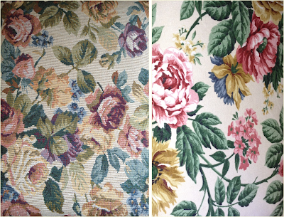 BEFORE! How the footstool started life; dull, dated tapestry print fabric and boring handles! |